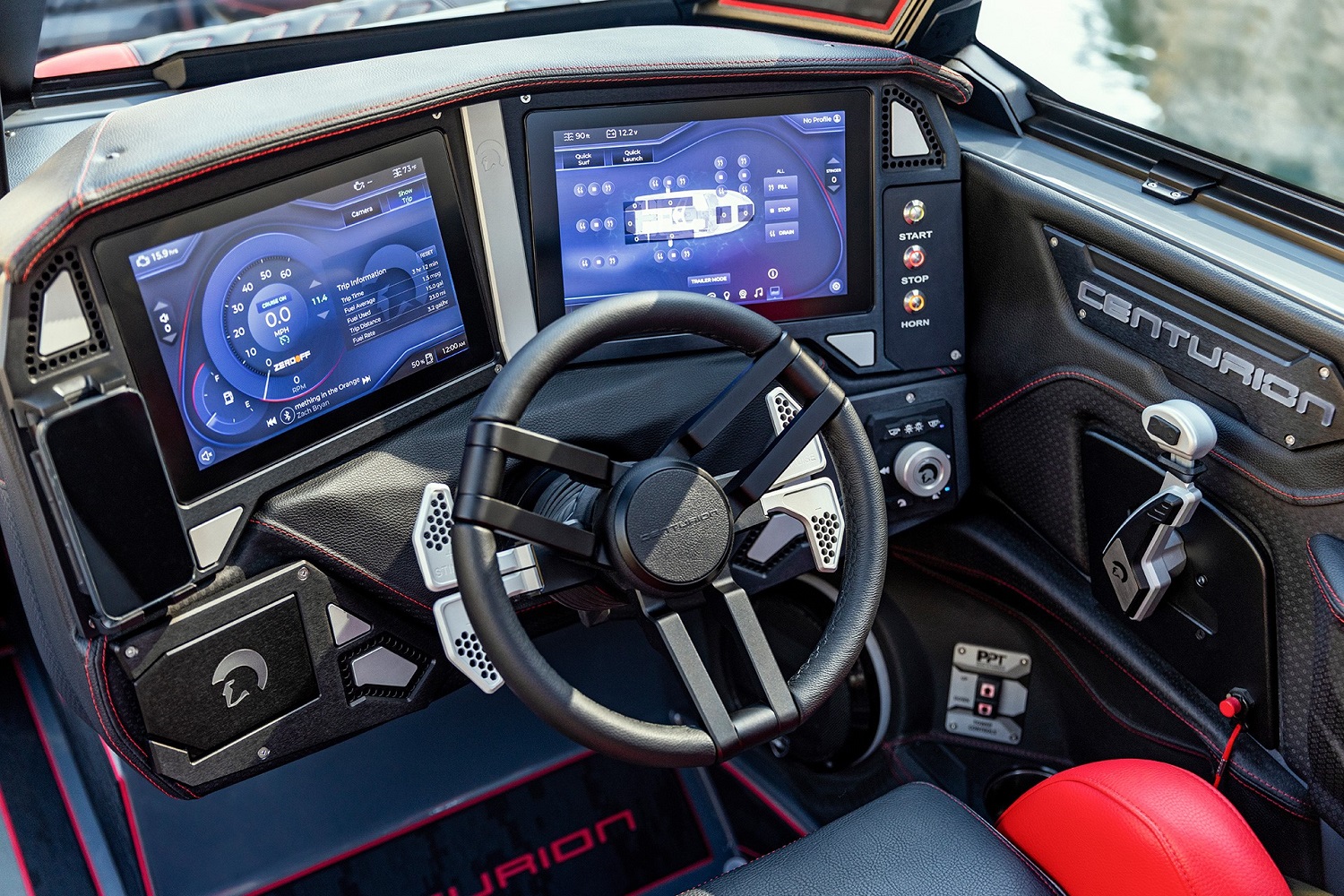 Новенький Centurion Ri230, оснащенный обновленным корпусом, дает вейксёрферам и вейкбордистам большую, ровную и плотную рамповидную волну с прочными краями и мягким приземлением, подходящую для любого уровня катания. Полностью переработанный 23-футовый катер, два огромных сенсорных 12’’ экрана, бортовой компьютер, беспроводная зарядка гаджетов, откидные кресла на корме и конечно же Балластная система RAMFILL объемом более 2,0 тонн. Пусть все знают, что Вы на воде! С вниманием к мельчайшим деталям, эта безупречно выглядящая, производительная машина создана для того, чтобы привлекать восхищенные взгляды. Новый агрессивный корпус, ветровое стекло в черной рамке и низкопрофильное вентиляционное отверстие RAMFILL. Тщательно выбирайте цвета, чтобы выразить свой собственный стиль. Ri230 с комфортом вмещает до 14 человек, с приятно удивляющим низким уровнем шума в кокпите благодаря цельной конструкции палубы, произведенной по технологии вакуумного напыления, в сочетании с запатентованной системой выхлопа Silent Stinger и эффективной мощностью двигателей от GM Marine. Общайтесь с друзьями и близкими, не повышая голоса!